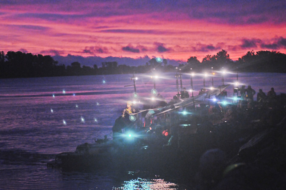 U.S. Army combat engineers with the 671st Engineer Company (Multi-Role Bridge), await to deploy Mark II bridge erection boats to push bridge sections together during Operation River Assault at Fort Chaffee, Ark., July 24, 2013. (U.S. Army photo by Pfc. Justin Snyder)