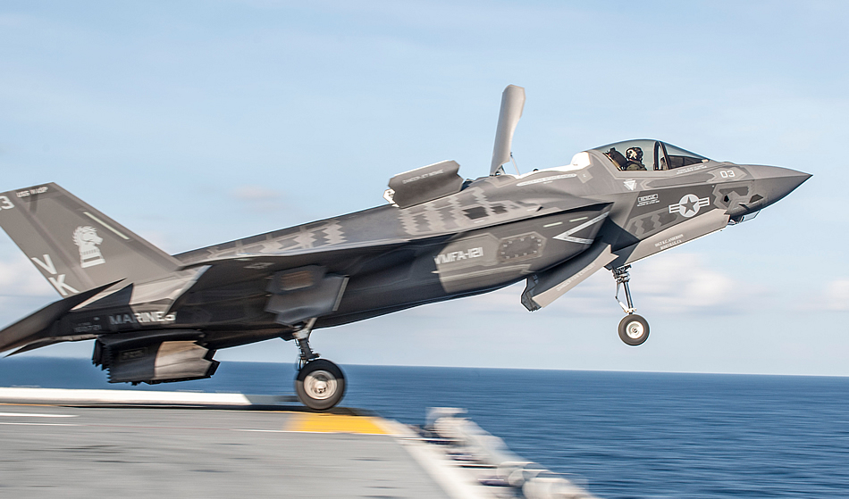 ATLANTIC OCEAN (May 25, 2015) An F-35B Lightning II takes off from the flight deck of the amphibious assault ship USS Wasp (LHD 1). Wasp, with Marine Fighter Attack Squadron (VMFA) 121 and VMFAT-501 embarked, is underway conducting the first phase of operational testing which will evaluate the full spectrum of F-35B measures of suitability and effectiveness in an at-sea environment. (U.S. Navy photo by Mass Communication Specialist 3rd Class Rawad Madanat)