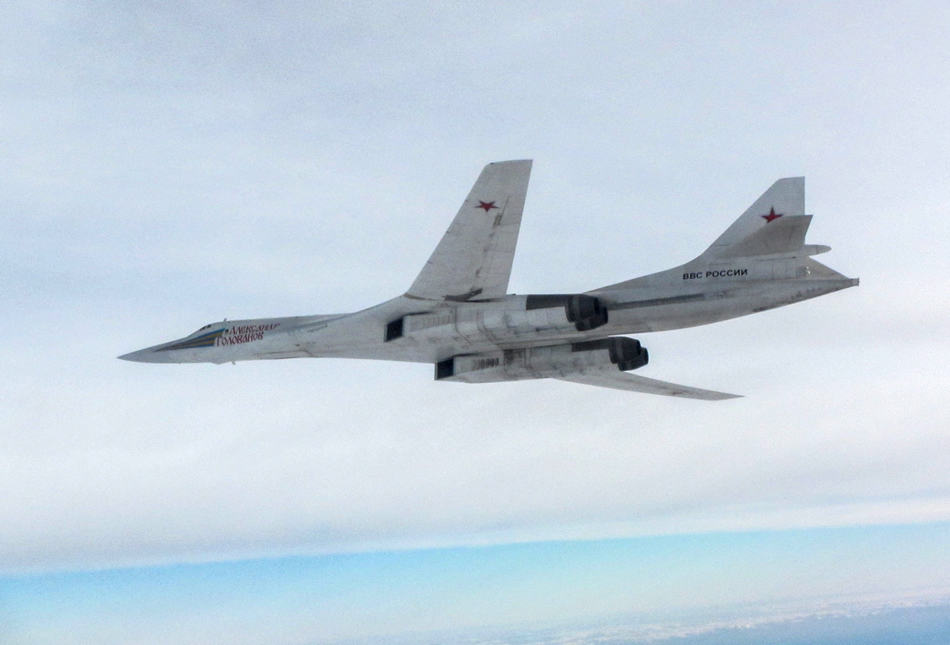 One of two "Blackjacks" intercepted by both French and British forces. On 17th February 2016, RAF Typhoon aircraft of were scrambled from RAF Coningsby to intercept two Russian TU-160 Blackjack aircraft. MoD/Crown copyright 2016